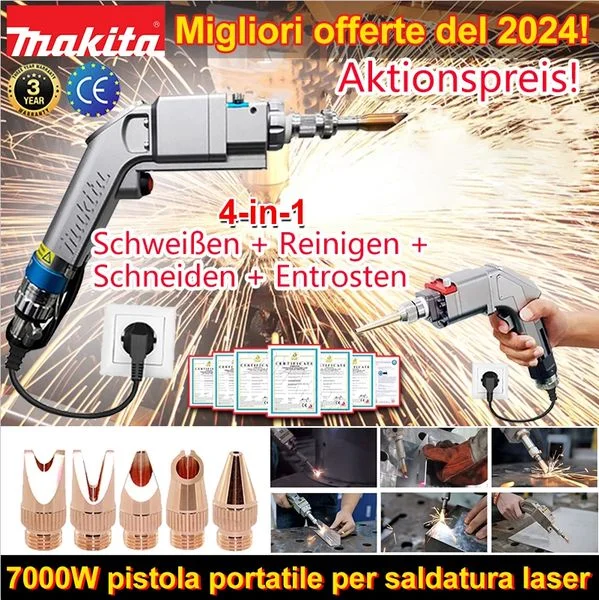 Do tych różnych zadań nie musisz kupować dodatkowego sprzętu, ponieważ dzięki jednemu z innowacyjnych pistoletów do spawania laserowego 4 w 1 firmy Makita możesz jednocześnie spawać, czyścić i ciąć.